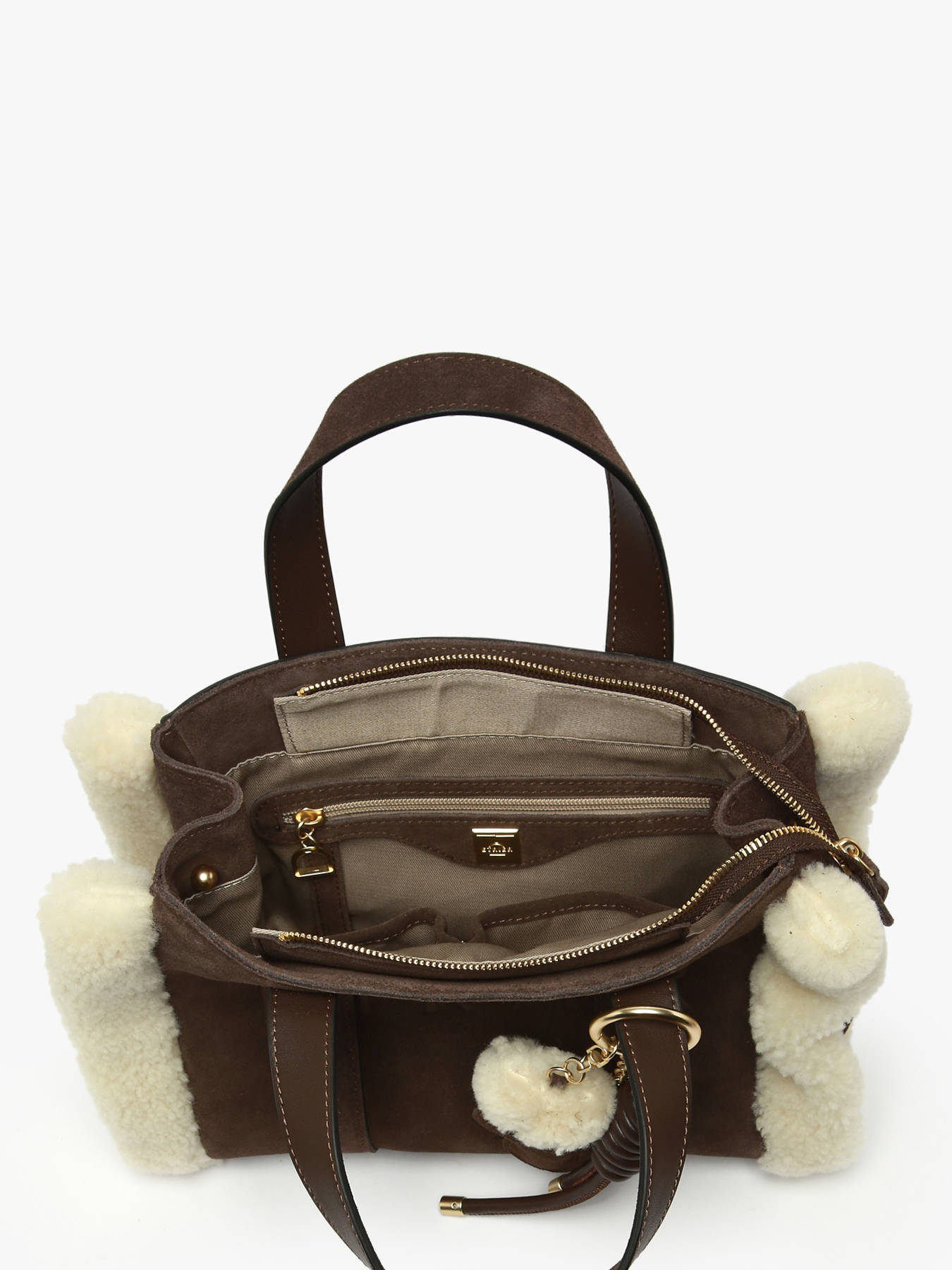 The ALPIN line shoulder bag by ETRIER combines charm and functionality. Made from velour leather lined with sheepskin, this small tote offers softness and authenticity. Its smooth leather back enhances durability for everyday use. Practical and versatile, it can be worn crossbody thanks to a removable and adjustable strap, suited to all preferences. This zippered bag features a well-organized interior with two slip pockets and one zippered pocket for your essentials. On the outside, a charm-style keychain reflects the iconic codes of ETRIER and the ALPIN collection: mitten, stirrup, and the brand’s letters, adding a distinctive touch. An elegant and versatile companion for your daily outings.