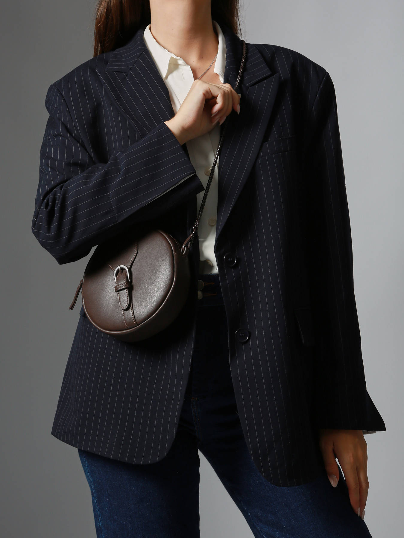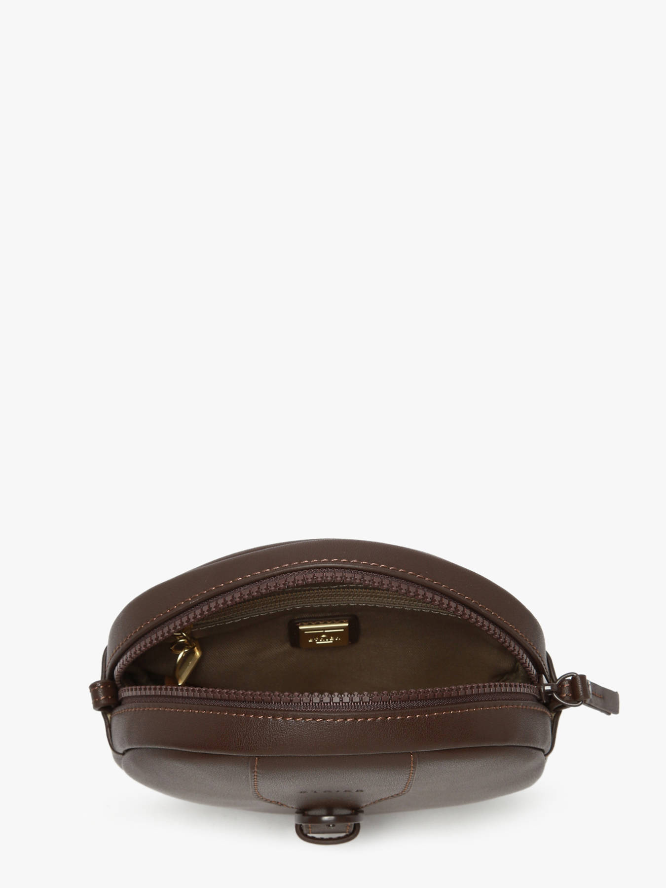 Le sac bandoulière ETRIER de la ligne OXER séduit par sa forme ronde et sa bandoulière en chaîne élégante. Confectionné en cuir, il se ferme par un zip sécurisé et arbore une boucle distinctive sur l’avant. Son intérieur pratique comprend une poche zippée. Résolument moderne et audacieuse, la gamme Oxer se démarque par un design épuré, sublimé par des accessoires métalliques ton sur ton qui apportent une sophistication subtile, fidèle à l’esprit « Highlander Cowboy ».